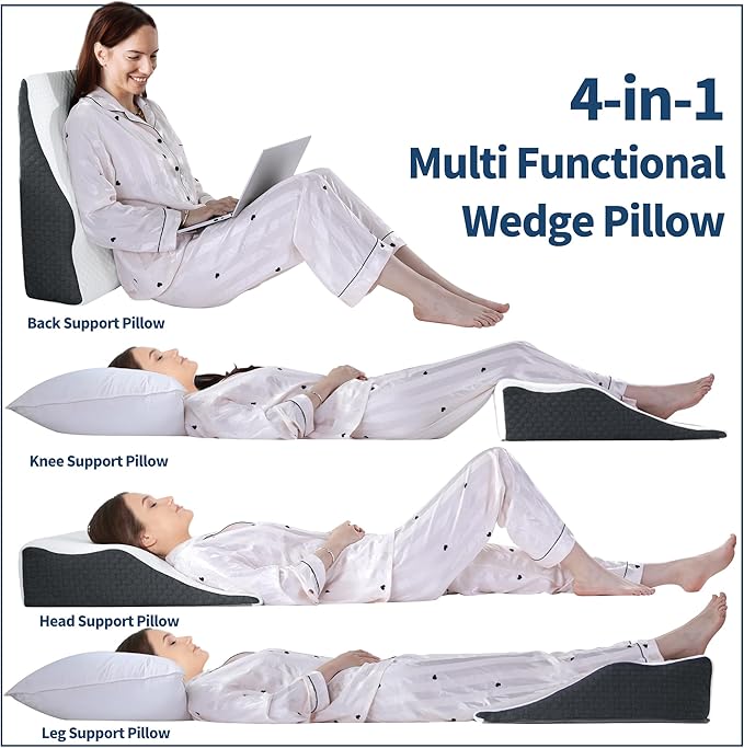 - 【8" Slope Wedge Pillow】Upgraded Wedge Pillow, 8" thick with a gentle slope. Perfect for sleepers who need to elevate their upper body to fall asleep faster. Larger than the regular size, it can easily support your head, neck, back, knees, and can also be used as a leg support to relieve pressure throughout your body and ease back pain.