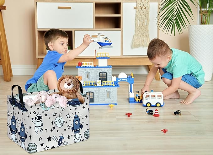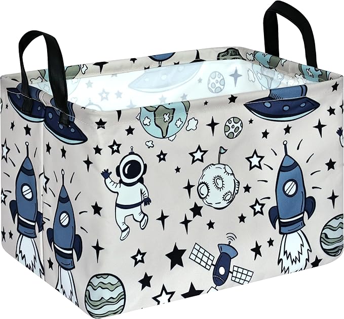 - 【Space Exploration Theme】:Enchanting space elements such as rockets, stars, astronauts, and planets adorn this storage basket, captivating children's curiosity and igniting their imagination and desire for exploration