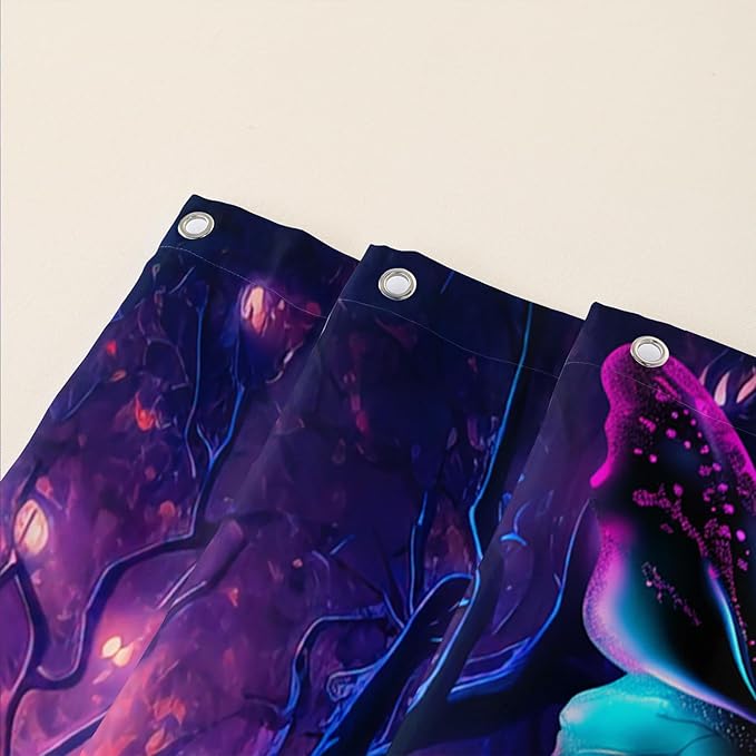 AILONEN 3D Tiger Shower Curtain for Bathroom,Purple Magic Forest Wildlife Printed Bath Curtain,Boys Roaring Tiger Decoration Shower Curtain Waterproof 72" W*72" H