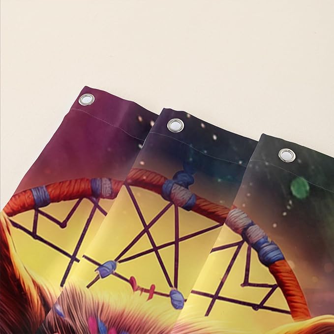AILONEN 3D Wolf Dream Catcher Shower Curtain for Bathroom,Safari Wolf Printed Bath Curtain for Boys Men,Wildlife Decoration Shower Curtain Waterproof 48" W*72" H