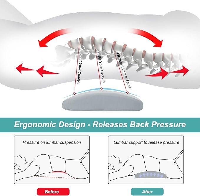 Cooling Lumbar Support Pillow for Bed Relief Lower Back Pain: Memory Foam Back Pillow for Sleeping - Gel Waist Wedge Pillow Side&Back and Stomach Sleepers - Lumbar Pillow for Office Chair/Couch/Car