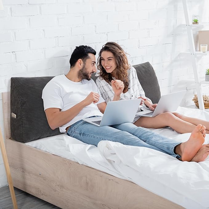 HIGOGOGO Wedge Headboard Pillow, Bed Rest Reading Pillow, Backrest Positioning Support Bolster Cushion with Removable Cover,King Size 76.8X20.4X8.4,Dark Grey