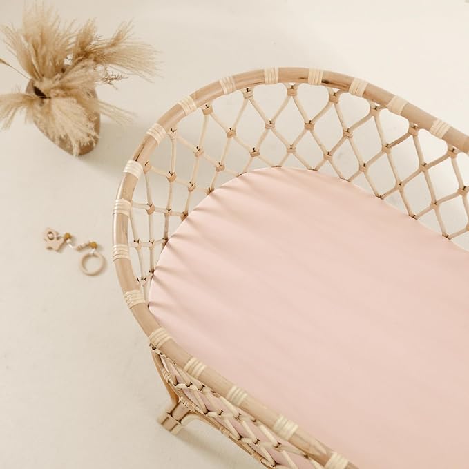 GRSSDER Stretchy Ultra Soft Fitted Bassinet Sheet 2 Pack, Universal Fit for Bassinets Baby Cradle Moses Basket Oval Rectangle Mattress Safe and Snug, Jersey Bassinet Sheets for Girls, White/Pink