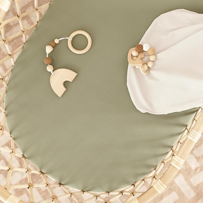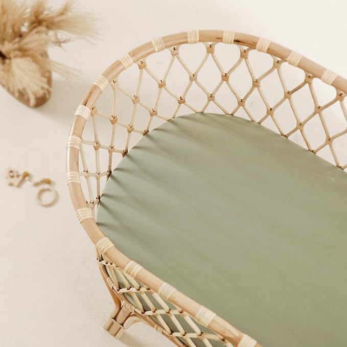- Universal Fit – Measuring 32" x 16" x 5". Our bassinet sheets fit almost all standard oval, round, rectangle, hourglass shaped bassinet mattresses and changing pads. Each bassinet mattress pad cover comes with an elastic band encased at the bottom for safety.