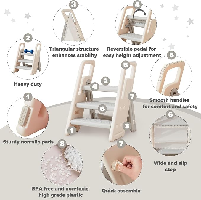 - CPC Certification: friendly material: Crafted from high-quality plastic that is both BPA-free and non-toxic,the Kiddorise learning stool is not only lightweight but also remarkably durable,with a capacity of up to 130lbs
