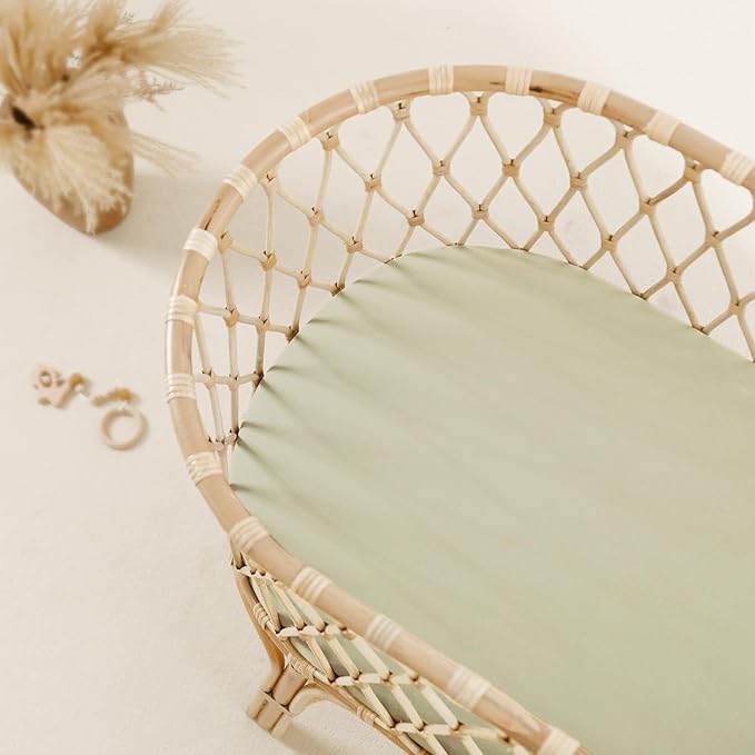 - Universal Fit – Measuring 32" x 16" x 5". Our bassinet sheets fit almost all standard oval, round, rectangle, hourglass shaped bassinet mattresses and changing pads. Each bassinet mattress pad cover comes with an elastic band encased at the bottom for safety.
