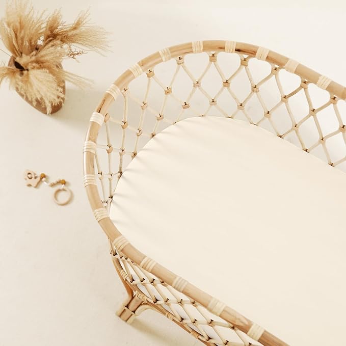 - Universal Fit – Measuring 32" x 16" x 5". Our bassinet sheets fit almost all standard oval, round, rectangle, hourglass shaped bassinet mattresses and changing pads. Each bassinet mattress pad cover comes with an elastic band encased at the bottom for safety.