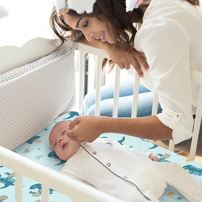 Pack n Play Fitted Sheet. 2 Piece Mini Crib Sheet. Elastic Playard Sheet. Portable Sheet Set. Elastic Convertible Playard Set. Compatible with Graco Pack n Play (More Dinosaurs)