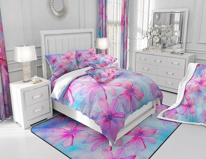 Feelyou Daisy Fabric Shower Curtain for Kids Boys Girls Pink Flower Bathroom Waterproof Accessories with 12 Hooks Floral Shower Curtain Wildflower Botanical Curtains,72x84 Inches