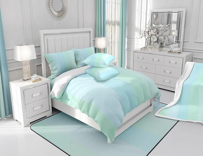 Feelyou Blue Green Stripe Shower Curtain Geometric Fabric Shower Curtain for Kids Simple Modern Bathroom Waterproof Accessories with 12 Hooks Women Men Fresh Style Curtains,72x78 Inches