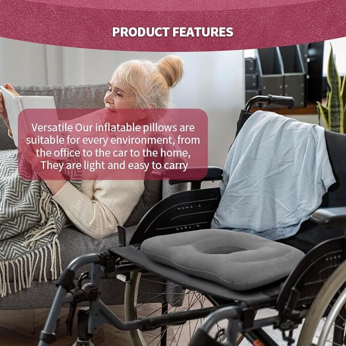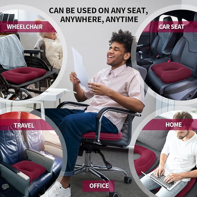 Inflatable Donut Pillow,Hemorrhoid Cushion- Excellent for Tailbone, Prostate, Sciatica, Bed sores, Postpartum Pregnancy, Post-Surgical Pain-Orthopedic Firm seat Cushion for Home, Office or car (red)
