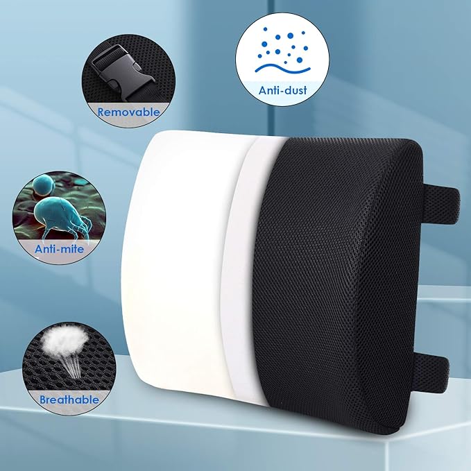 - Lumbar Support Pillow for Car or Office: Targeting lower back discomfort, contours to your body; ideal for long hours sitting in office chairs, car seats, or on the couch. CompuClever memory foam back pillow provides great chair back support