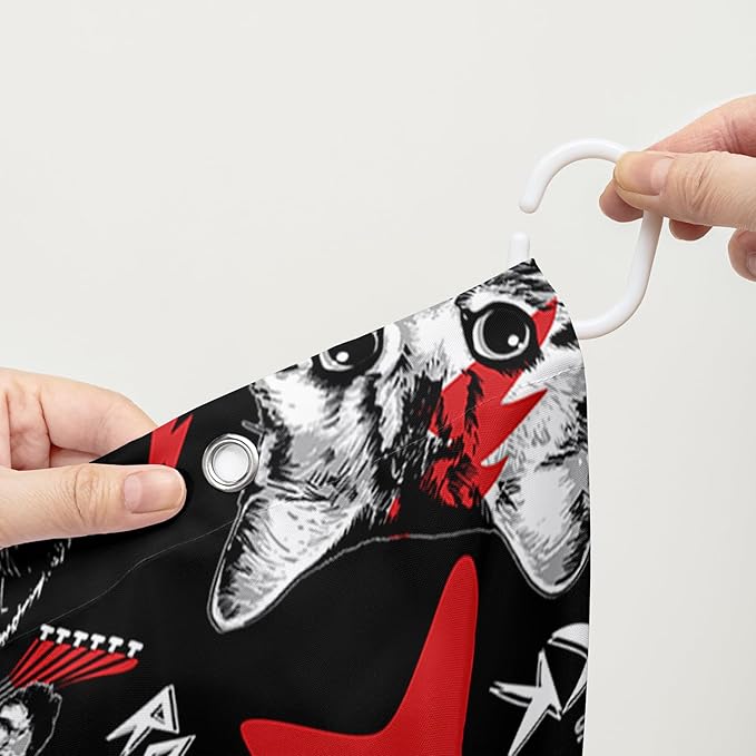 AILONEN Kitten and Puppy Shower Curtain,Rock Kitten Puppy Bath Curtains for Kids Boys Girls,Animal Polyester Waterproof with 12 Plastic Hooks 48" W*72" H