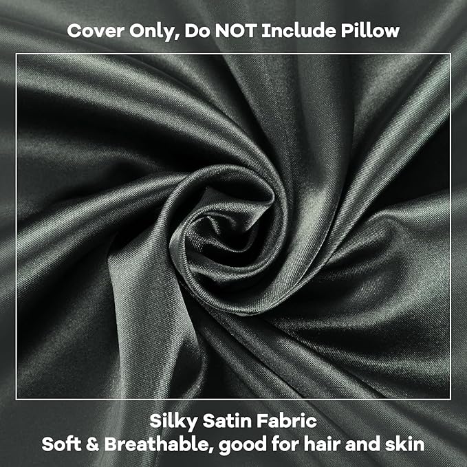 HOMBYS Satin Bed Wedge Pillow Cover Silky & Smooth Wedge Pillowcase 1 Pack 24x24x10, Soft & Breathable, Removable & Machine Washable-Zipper Design (Pillow Not Include),Dark Grey