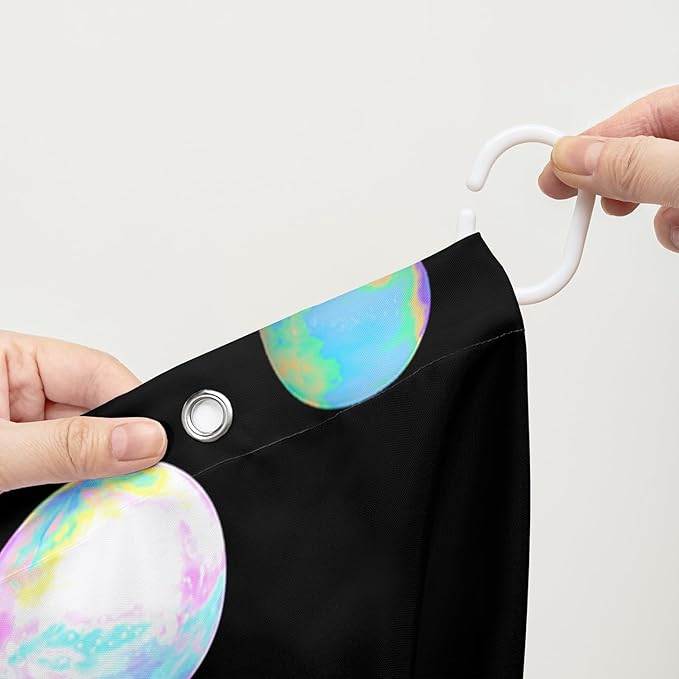 AILONEN Colorful Planet Shower Curtain,Purple Planet Bath Curtain for Bathroom Decor,Polyester Waterproof with 12 Plastic Hooks 72" W*84" H