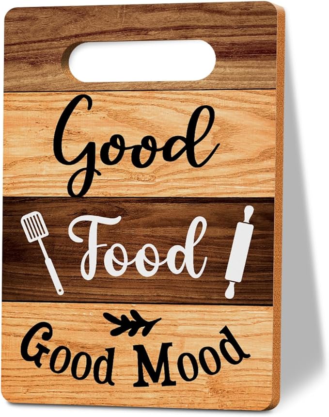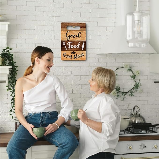 Good Food Good Mood Cutting Board Gifts, Wood Cutting Boards for Kitchen, House Warming Gifts New Home, Kitchen Wall Art, Christmas Birthday Gifts for Women Mom Grandma 8 x 12 Inch