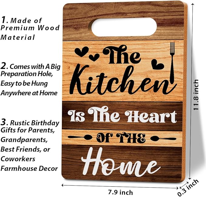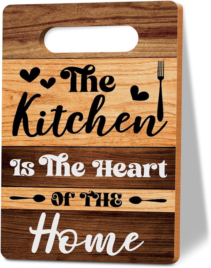 The Kitchen Is the Heart of the Home Cutting Board Gifts, Wood Cutting Boards for Kitchen, House Warming Gifts New Home, Kitchen Wall Art, Christmas Birthday Gifts for Women Mom Grandma 8 x 12 Inch