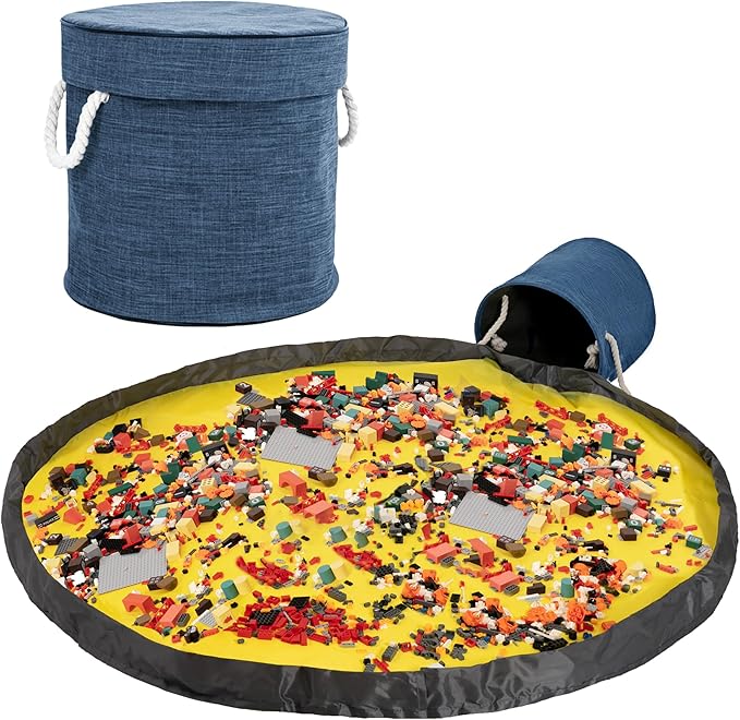 EXQ Home Toy Storage Basket and Building Bricks Toy Play Mat for Kids Rooms- Organizer Storage Organizer for Toys, Playroom Canvas Bag Gift for Boy/Girls (Navy 13" x12")