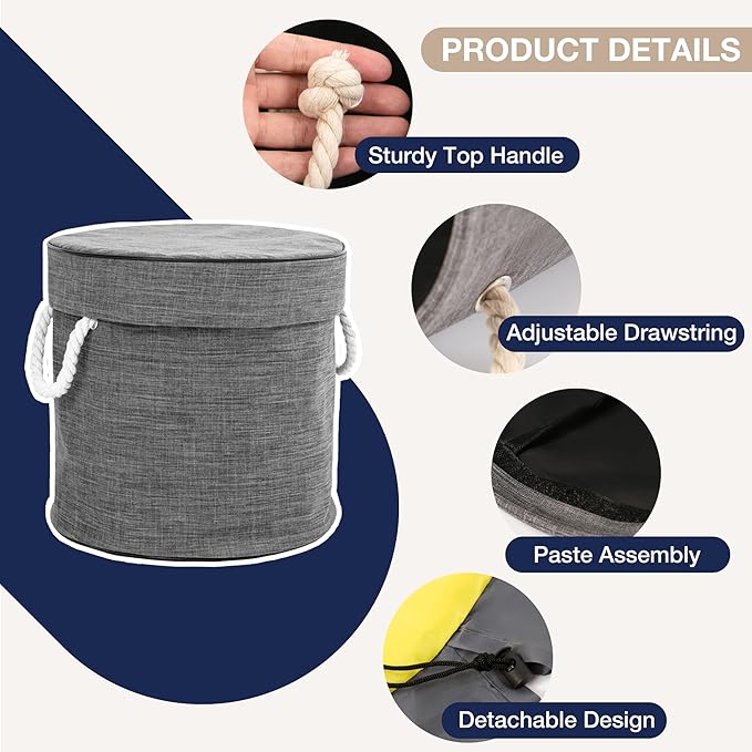 EXQ Home Toy Storage Basket and Building Bricks Toy Play Mat for Kids Rooms- Organizer Storage Organizer for Toys, Playroom Canvas Bag Gift for Boy/Girls (Grey 13" x12")