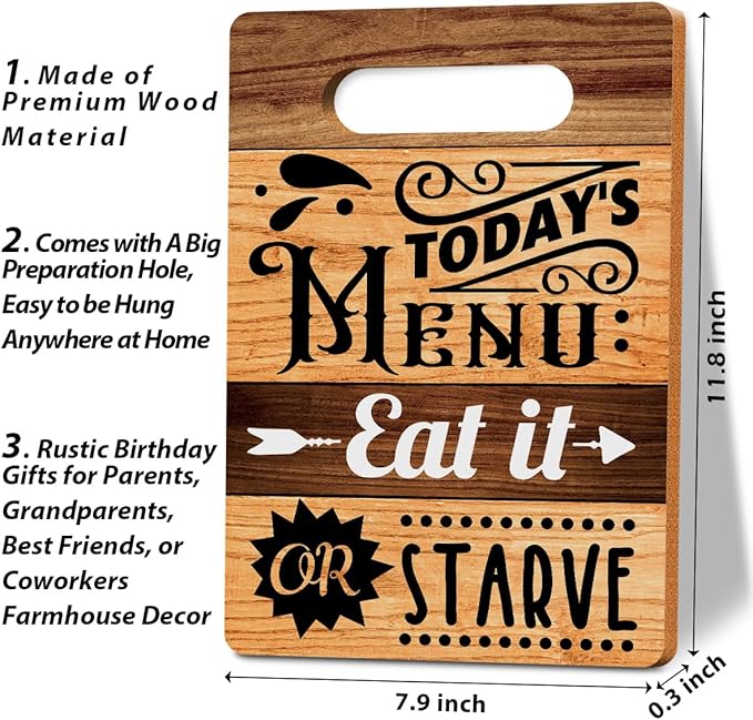 Cutting Board Gifts, Today's Menu Eat It Or Starve Wood Cutting Boards for Kitchen, House Warming Gifts New Home, Kitchen Wall Art, Christmas Birthday Gifts for Women Mom Grandma 8 x 12 Inch