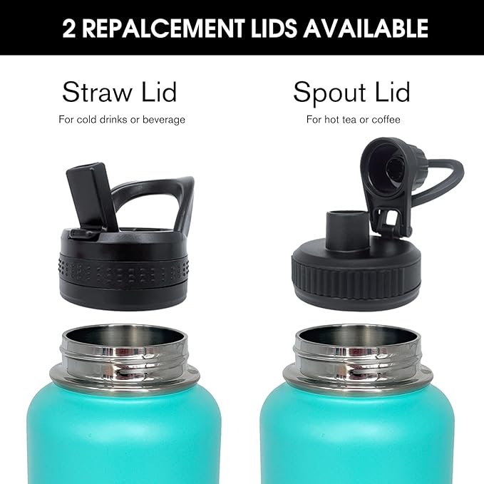 - 【Spout Lid & Straw Lid】 This water bottle comes with 2 lids: an innovative leak-proof spout lid and a newly improved straw lid that has been enhanced for better flow. Easily fill your water bottle with ice and clean it through the wide mouth opening. Both allow easy one-handed or hands sipping, they are designed for you to drink anytime, anywhere.