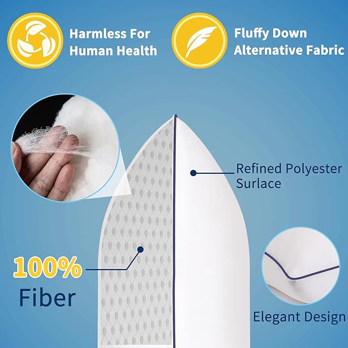 - This set includes four generously sized queen pillows, making it ideal for outfitting multiple beds or having extra pillows on hand for guests. The ample quantity ensures everyone in your household can enjoy a luxurious and comfortable sleep experience.