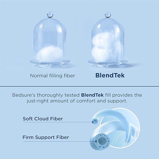 - JUST RIGHT COMFORT: Bedsure BlendTek fill queen pillows 2 pack perfectly blends the support of firm fibers and the comfort of softer fibers, providing a just-right comfort.