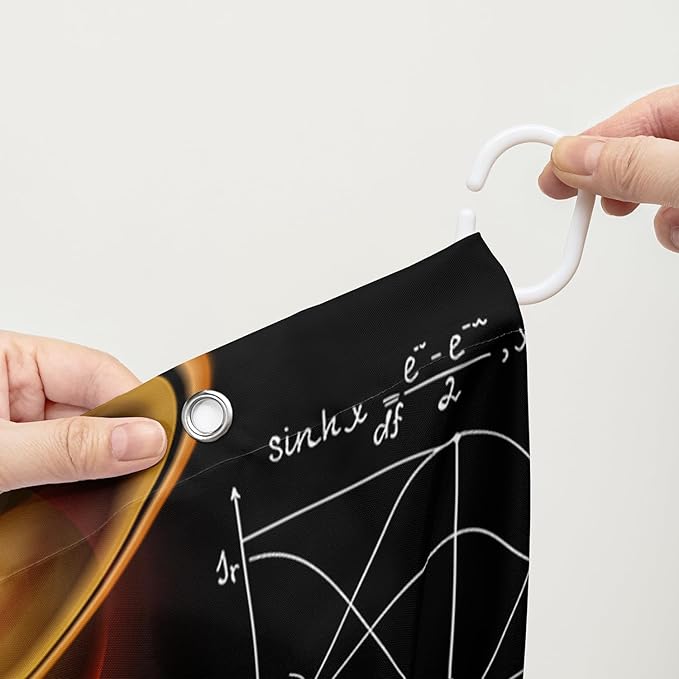 AILONEN Solar System Shower Curtain,Math Galaxy Planet Bath Curtain for Bathroom Decor,Polyester Waterproof with 12 Plastic Hooks 72" W*78" H