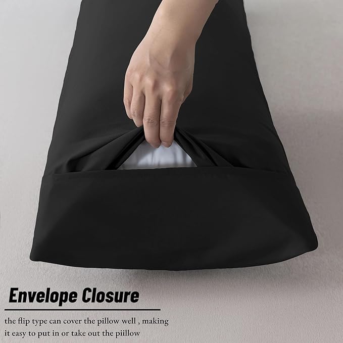 Ubauba Memory Foam Body Pillow with Cover, Full Large Body Pillows Insert for Adults with Envelope Closure Pillowcase, Firm & Fluffy Long Bed Pillows for Sleeping (20x54 inch, Pitch Black)