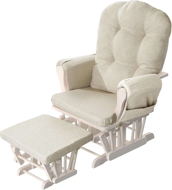 - 【Ergonomic Design】The glider rocker replacement cushions can effectively support your spine, arms, and ankles and fit your body curves. Foam-filled seat cushion reduces pressure on hips and tailbone. The microfiber padded backrest cushion conforms to your spine and supports your back. Meanwhile, the footrest is designed to allow you to relax your ankles and spend your time in the glider rocker chair in a more relaxed position.