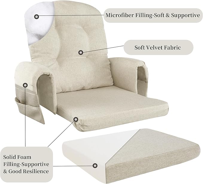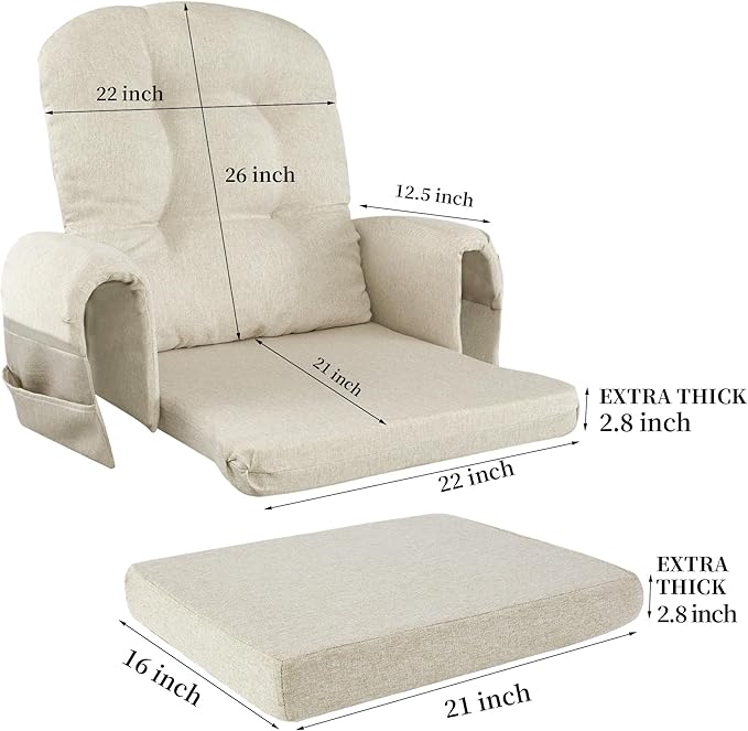 - 【Convenient Storage and Easy Assemble】2 large-capacity side pockets are designed on the armrest for convenient storage, books, toys, magazines,TV remotes and other small items, just enjoy your leisure time without any worries. Sturdy ties are designed to keep the cushions in place and avoid accidental sliding. The cushion cover is removable for easy cleaning, machine washable.