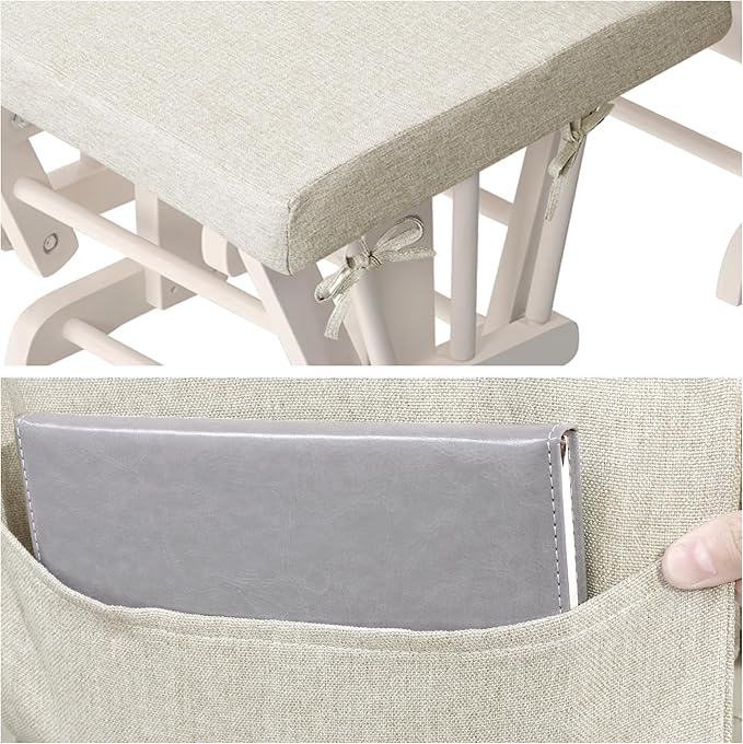 HOMBYS 5 PCS Glider Rocker Replacement Cushions with Storage Side Pocket,Linen-Like Fabric, Foam & Microfiber Filling, Non-Slip & Washable,Thickened & Supportive for Glider Rocking Chair, Khaki