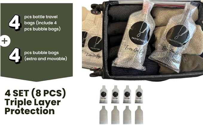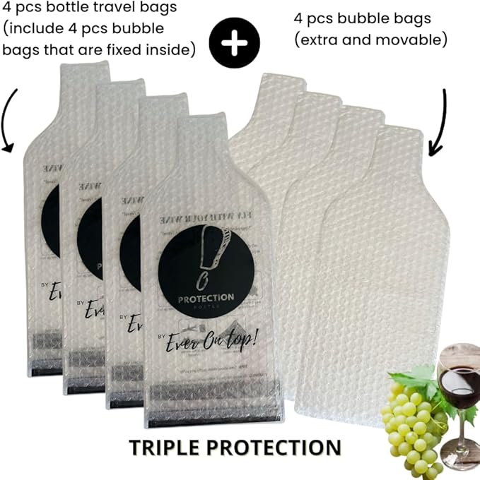 [TRIPLE PROTECTION] 4 Set (8 pcs) Reusable Wine Bottle Travel Protector Bags - Unbreakable Wine Bags for Travel, Wine Protector bags for Travel Double Layer Wine Bubble Bag for Travel