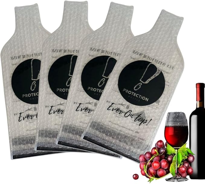 - ACCOMMODATED DIFFERENT BOTTLE SIZES AND SHAPES including wine, liquor, champagne, whiskey, oils, perfumes and other fragile glass bottles. 4 Pack reusable bottle bubble wrap for travel.