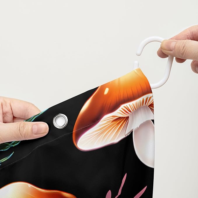 AILONEN Cartoon Mushroom Shower Curtain,Cute Red Mushroom Waterproof Fabric Bath Curtain for Kids Girls Boys,Natural Fungal Plants Shower Curtain Set for Bathroom 72" W*96" H