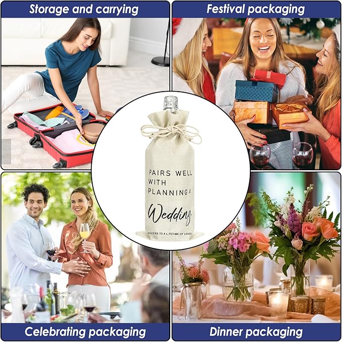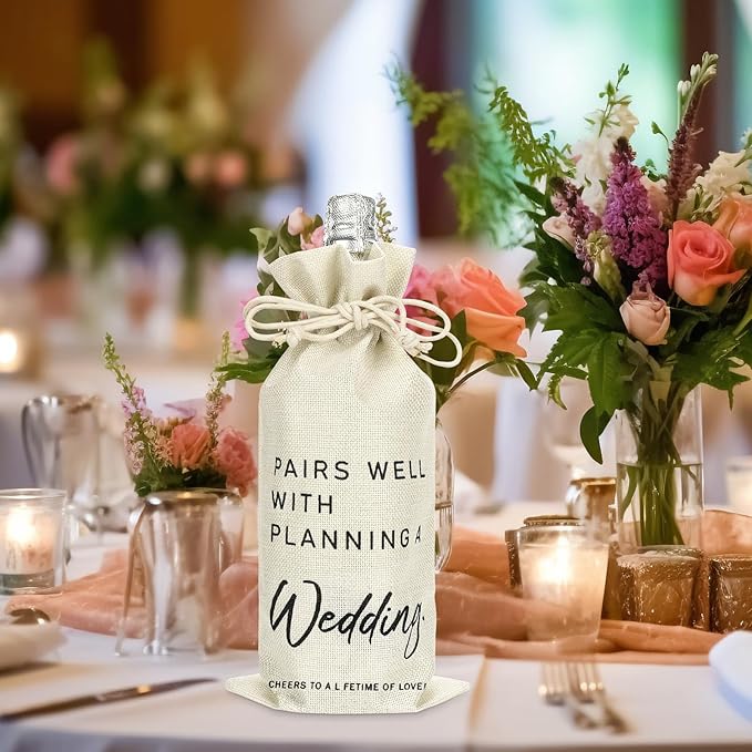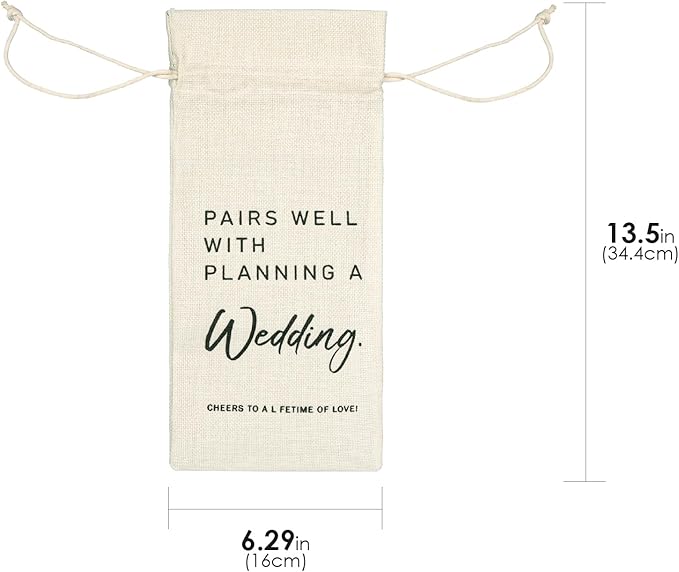 SHIDOW Wedding Wine Bag, Linen Wine Bottle Bags, Bride and Groom Gift,Wedding Gift,Reusable Wine Bag -Pairs Well With Getting Married (3Pcs)