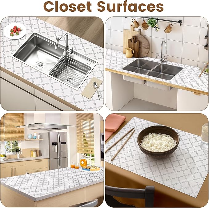 - Ease of Cutting and Installation: HOIIOH shelf liners for kitchen cabinets non-adhesive, Can be cut into desired shapes and size, easy to use and install. The cabinet shelf liner perfect solution for organizing your shelve, drawer, cupboard, refrigerator, countertops,closet.