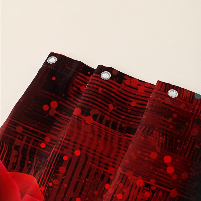 AILONEN Red Rose Shower Curtain for Bathroom, Romantic Rose Flower Bath Curtain,Grey Abstract Waterproof Floral Butterfly Print Shower Curtain Decoration with 12 Plastic Hooks, 72" W*96" H