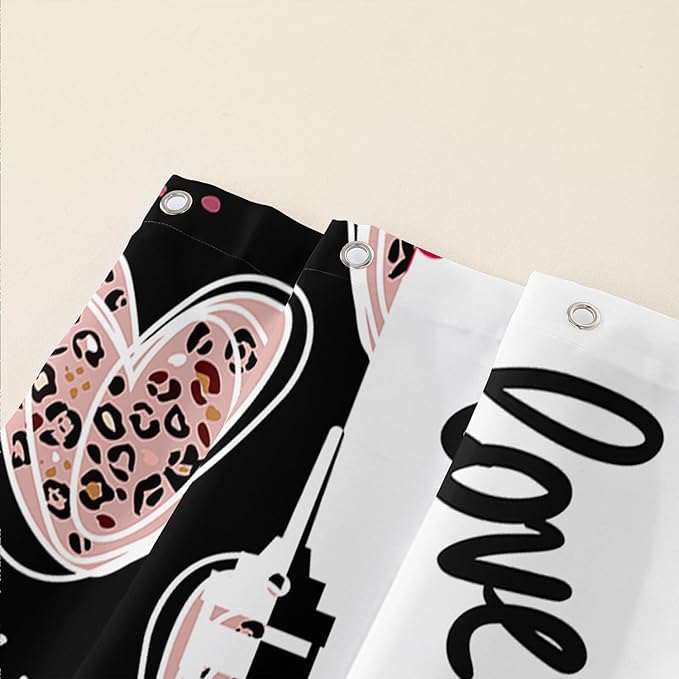 AILONEN Heart Love Shower Curtain for Bathroom, Black and White Eiffel Tower Print Bath Curtain,Pink Hearts Girls Women Shower Curtain Decoration Waterproof with 12 Plastic Hooks, 72" W*72" H
