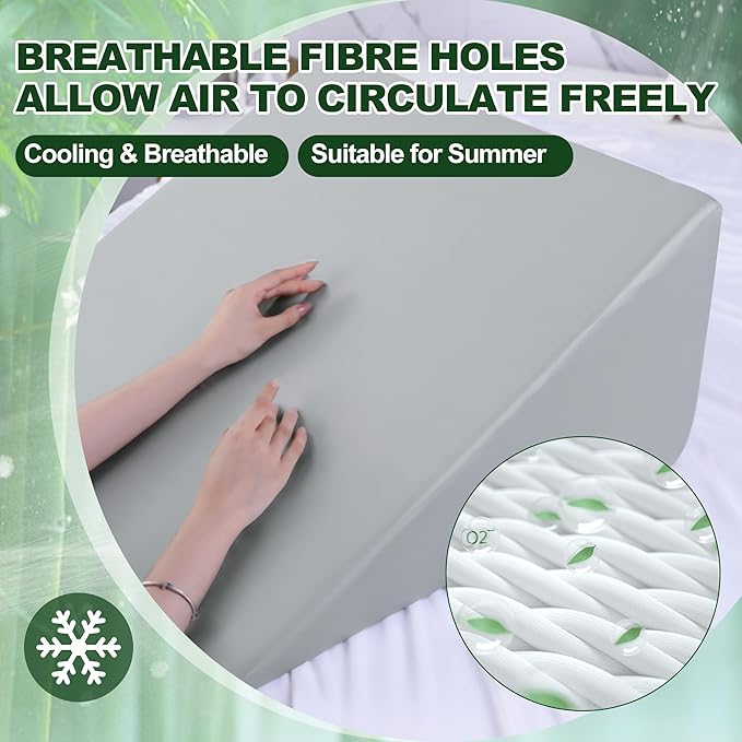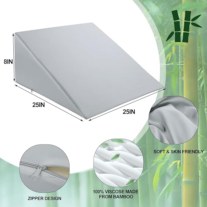 HOMBYS Bamboo Viscose Bed Wedge Pillow Cover with Zipper, 100% Viscose Made from Bamboo, Soft, Cooling, Breathable Wedge Pillowcase Sweat-Absorbent Pillowcase for Summer, 25"x25"x8", Light Grey