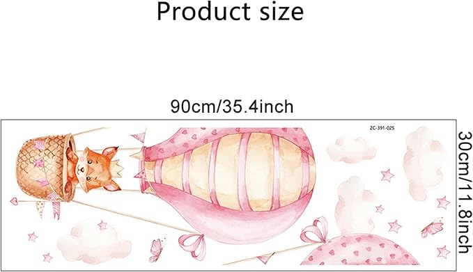 - 5. Quality Assurance and Customer Satisfaction: We take pride in providing high-quality vinyl wall decals. If you have any issues with our product, our dedicated customer service team is here to assist you. Enhance your home decor with this charming hot air balloon, fox, safari, animal, and star wall decal. Sizes: 22.8 inch * 24 inch. Material: Vinyl, PVC. Colors: Pink.