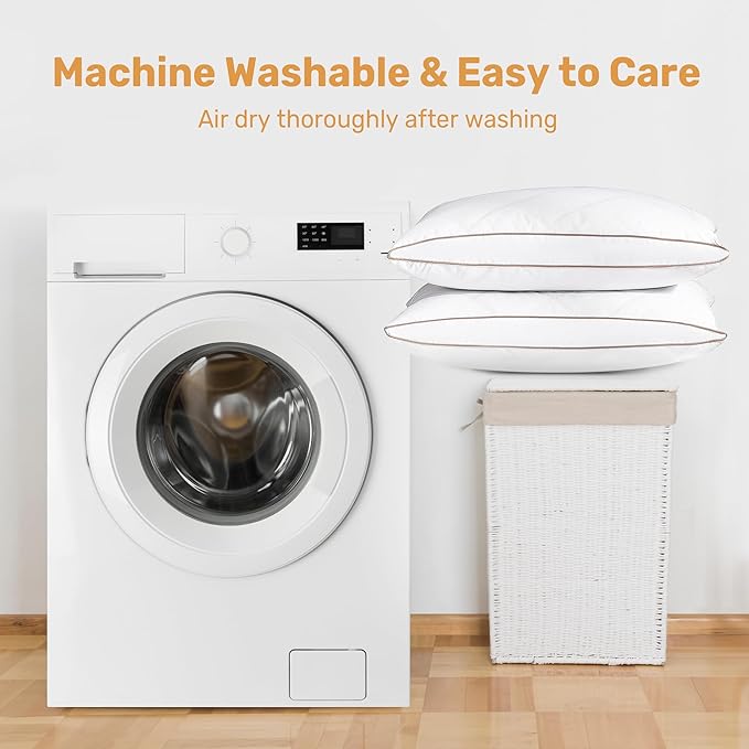 - CARE INSTRUCTION: Machine washes cold separately gentle cycle, tumble dry low until thoroughly dry. Keep feather pillows as dry as possible. Fluff your pillows every morning could be helpful to keep them in good condition.