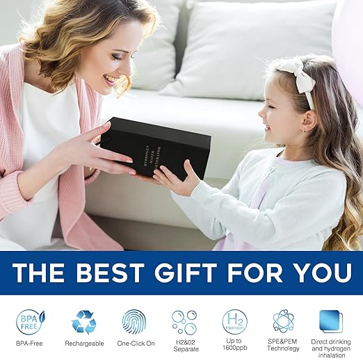 - โ ใ๐๐๐ซ๐๐๐๐ญ ๐๐๐๐ฅ๐ญ๐ก๐ฒ ๐๐ข๐๐ญใDrinking hydrogen water offers numerous health benefits, such as enhancing metabolism, alleviating muscle soreness, and improving sleep quality. Establishing a daily ritual of drinking water can enrich your life and safeguard the well-being of both yourself and your family. Whether it's for a family member or a friend, this hydrogen bottle serves as a considerate and practical gift that demonstrates your concern for their health.