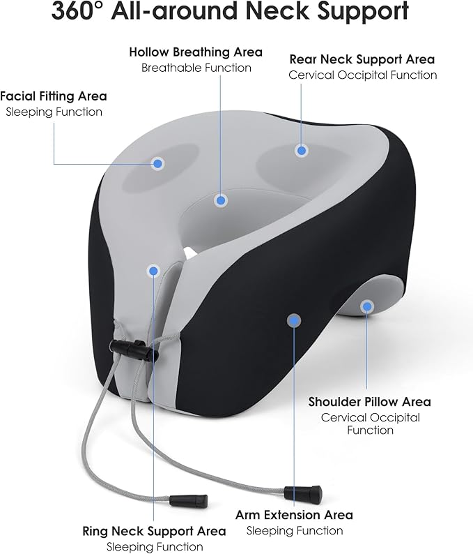 - 【2 in 1 Travel Pillow】As U shaped neck pillow, our neck pillow airplane offers 360° all-around neck support and helps you keep your neck and head upright to alleviate pressure and without getting any soreness during travel. As face down pillow, the airplane pillow is designed with a perfect 45° angle, allowing your head and neck to naturally lean forward. This travel pillows for airplanes decreases the pressure of your cervical vertebra.