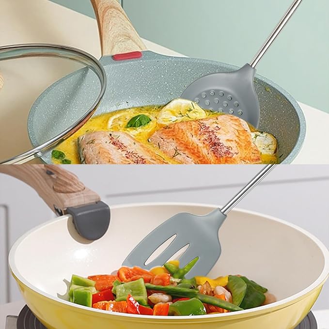 - Handle with silicone sleeve design has good heat insulation and non-slip effect for better grip; High hardness and stainless steel handle, Enhance durability to prevent bending and breaking, Can be used for a long time