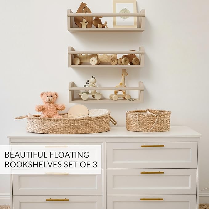 - Beautiful Nursery Shelves: The ZICOTO floating book shelves for wall are the perfect addition to your nursery furniture! The beige wood kids bookshelf set is a decorative gem in any nursery & kids room