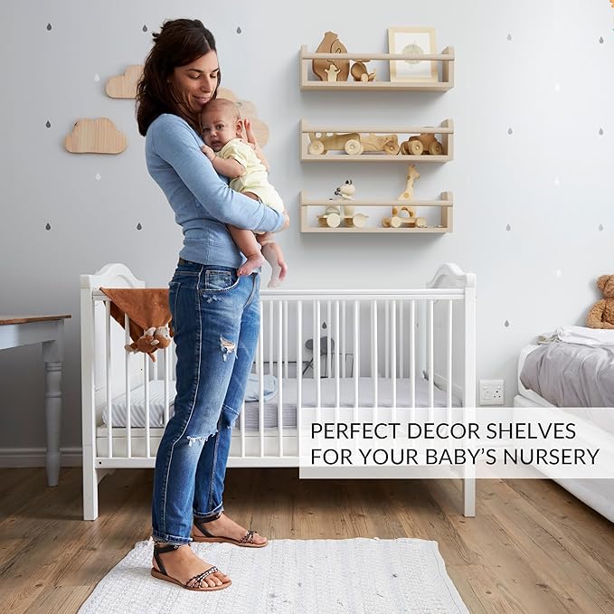 - Very Sturdy and Save: Thanks to its robust construction in solid wood, when mounted properly, you can place books or other heavier favorites on the nursery book shelves - without worrying about the toddler wall shelves falling down