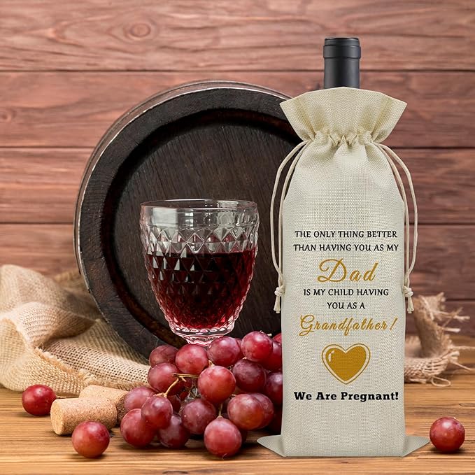 - New Grandparent Gifts First Time 2024:Tell grandpa the good news about your pregnancy through this wine bag, a gift from your future mother to your future grandpa. Perfect for your grandfather, father or dad as first time father's day present, pregnancy announcement for first time grandfather in 2024. Give it to your grandpa for their birthday, Christmas, valentines day, father's day or anniversary gifts.