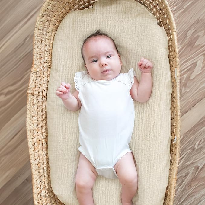 - SKIN-FRIENDLY TO BABY: These muslin bassinet sheets are made of 100% cotton (Muslin) for maximum breathable with skin-friendly soft touch. Our bassinet sheets are hypoallergenic, gentle on baby's delicate skin. It will provide super comfortable sleeping environment for your little one.