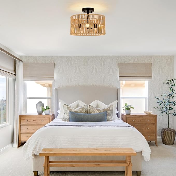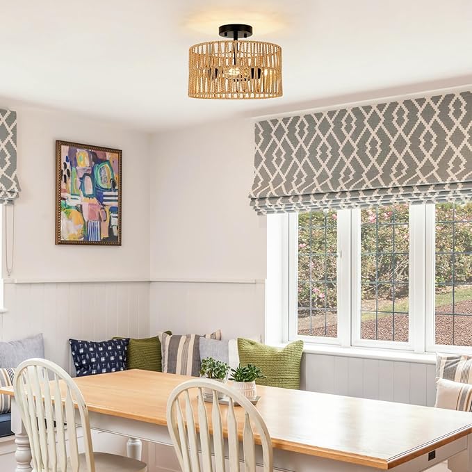 - Ideal for a Variety of Styles: The versatility of the rattan ceiling lamp makes it ideal for any home decor, from coastal to bohemian and rustic. Can be used as a bedside shade, in entrance hall, nursery, over a kitchen island, dining table and patio